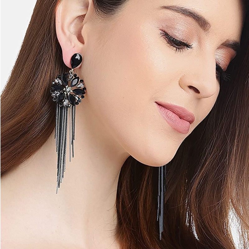 Crystal Studded Tassel Earings Jewellery