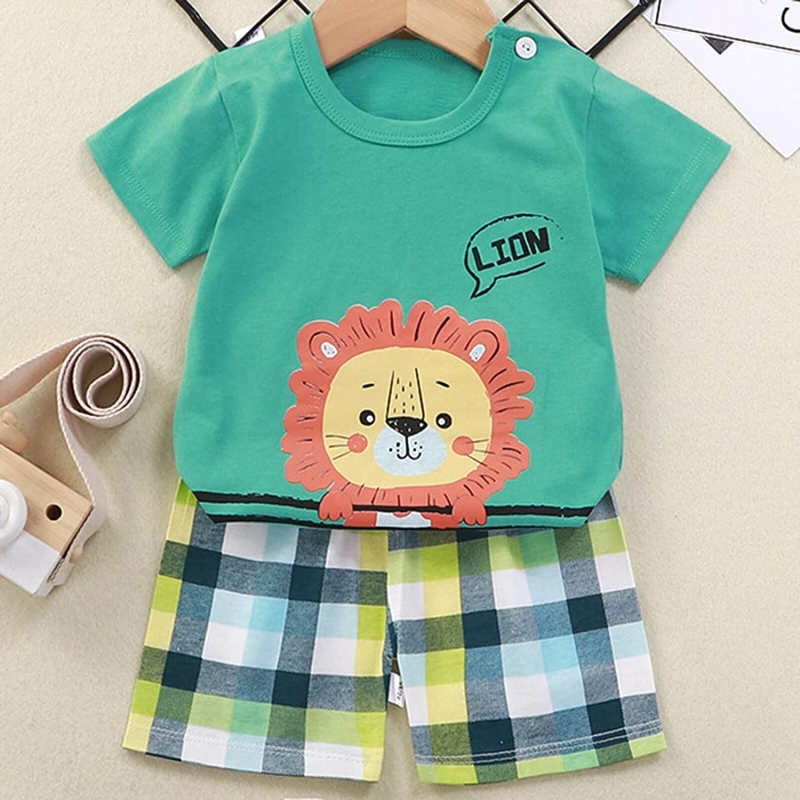 بولد ن أنيقة القطن المرح الكرتون طباعة بارد تي شيرت والسراويل
